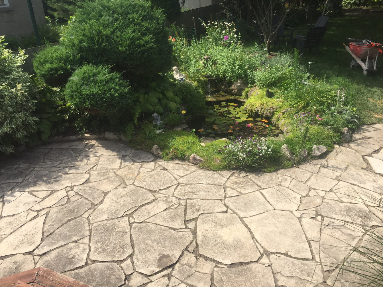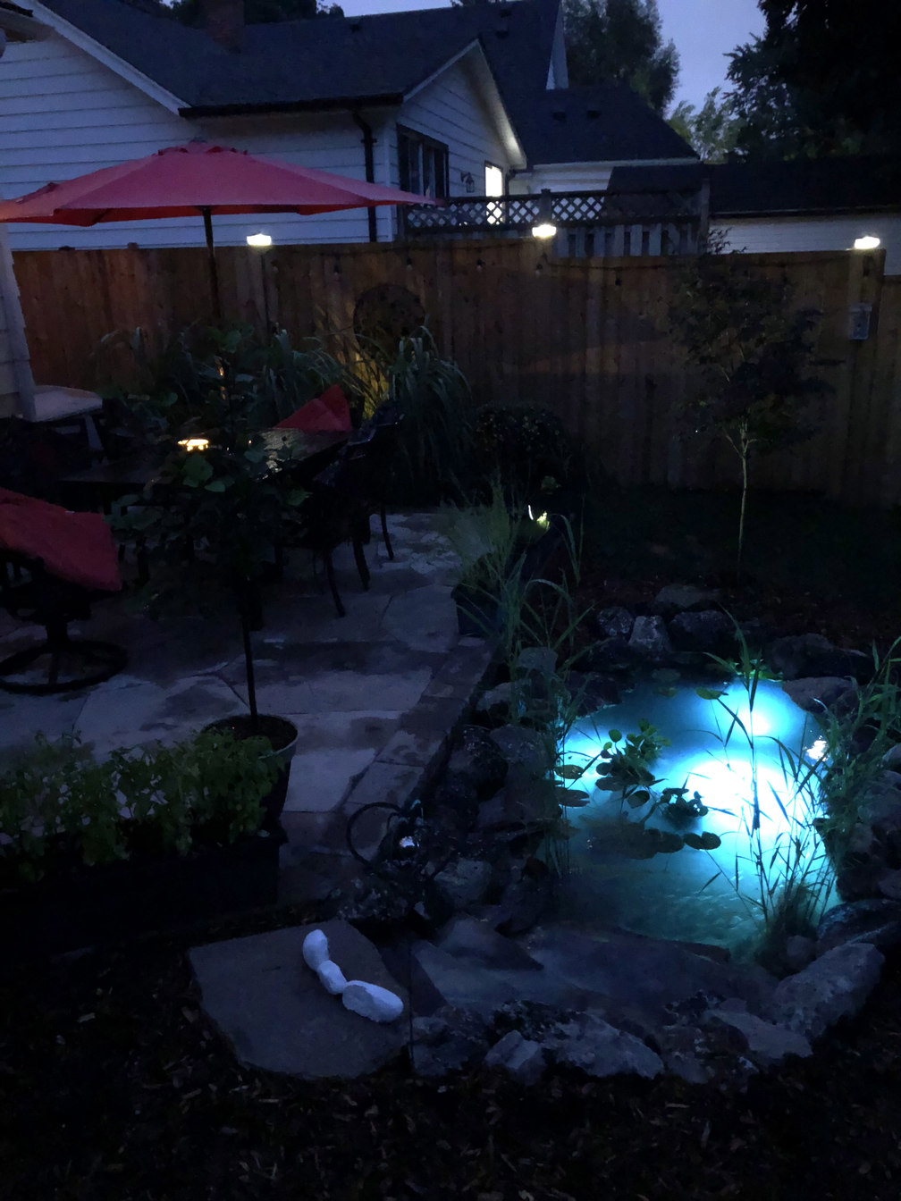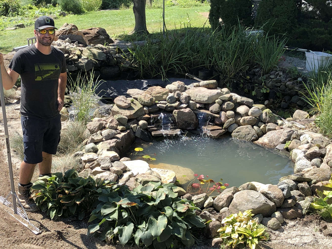 Brian O'Connor and One of His PondsWater Feature: Fish Pond & WaterfallStones, Aquatic Lily & Plants in Fish PondStone Water Fall, Pond & Aquatic PlantsView of Fish Pond from PatioView of Fish Pond and Dog from PatioNight View of Pond w. Landscape LightingNight View of Pond w. Landscape LightingNight View of Pond w. Landscape LightingPond w. Water Fall & PlantingNight View of Pond w. Landscape LightingBrian's Hand Adjusting a RockWater Feature w. Rocks & Aquatic PlantsDragonfly on a Lily PadFrog Basking in Sun Under Mushroom UmbrellaSunset View of Backyard & PondDry River Bed using River StonesWater Feature: Pond with WaterfallPond with Stone WaterfallPatio View of Pond, Walkway and DogStone Water FeatureNight View of Pond Lit w. Submersible Lighting